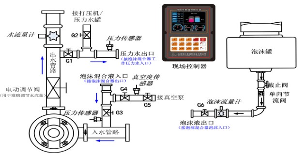 3、混合器應安裝在水泵附近,與水泵進水管和出水管連接。混合器要求水泵進口壓力要小于0.03MPa,否者將影響混合器的吸取泡沫液的性能。