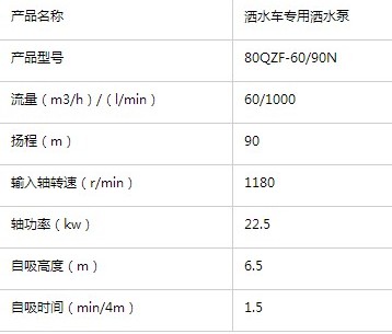 型號:80QZB(F) 60/90 流量(m3/h):60m3,揚程(m):90,輸出轉(zhuǎn)速:1480,軸功率(kw):22.5,自吸高度(m):6.5,自吸時間(min/5m):1.0效率:65%,備注:左、右旋轉(zhuǎn)